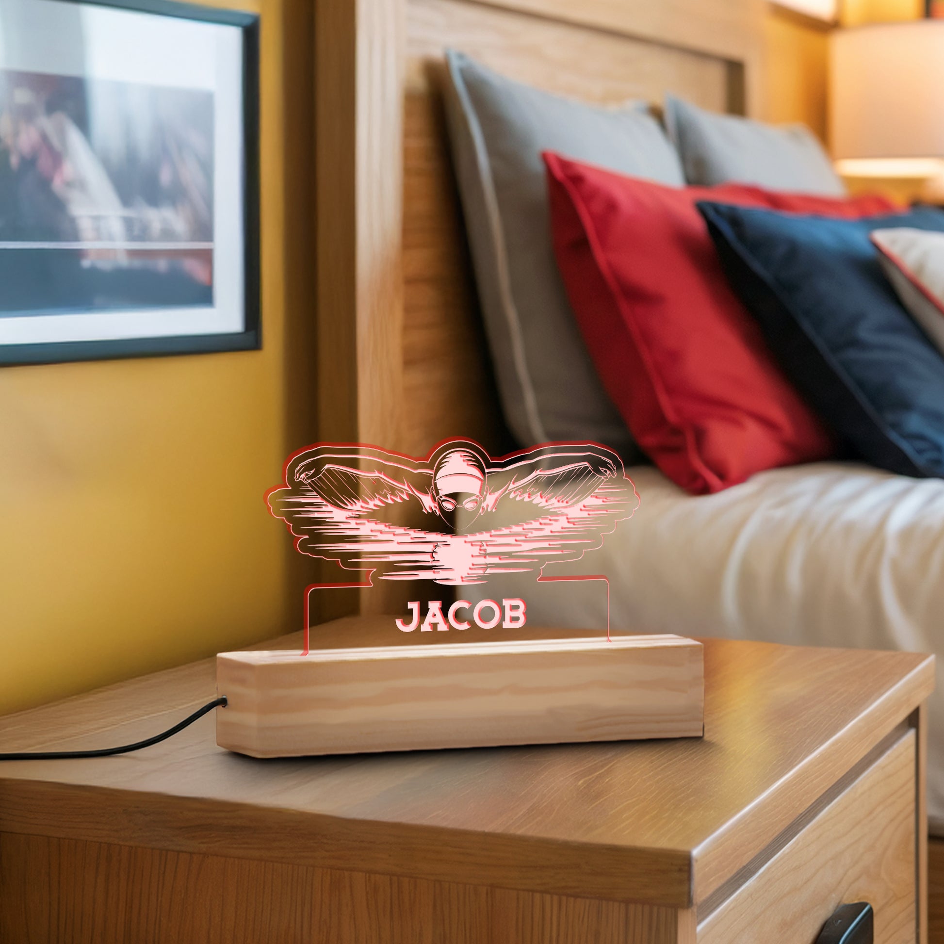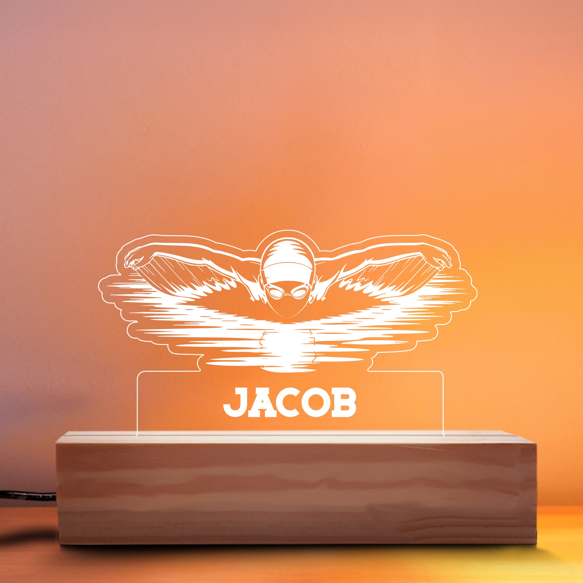 Swimming Nightlight – Personalized LED Acrylic Lamp for Kids’ Bedrooms, Sports Fans & Swimming-Themed Gifts